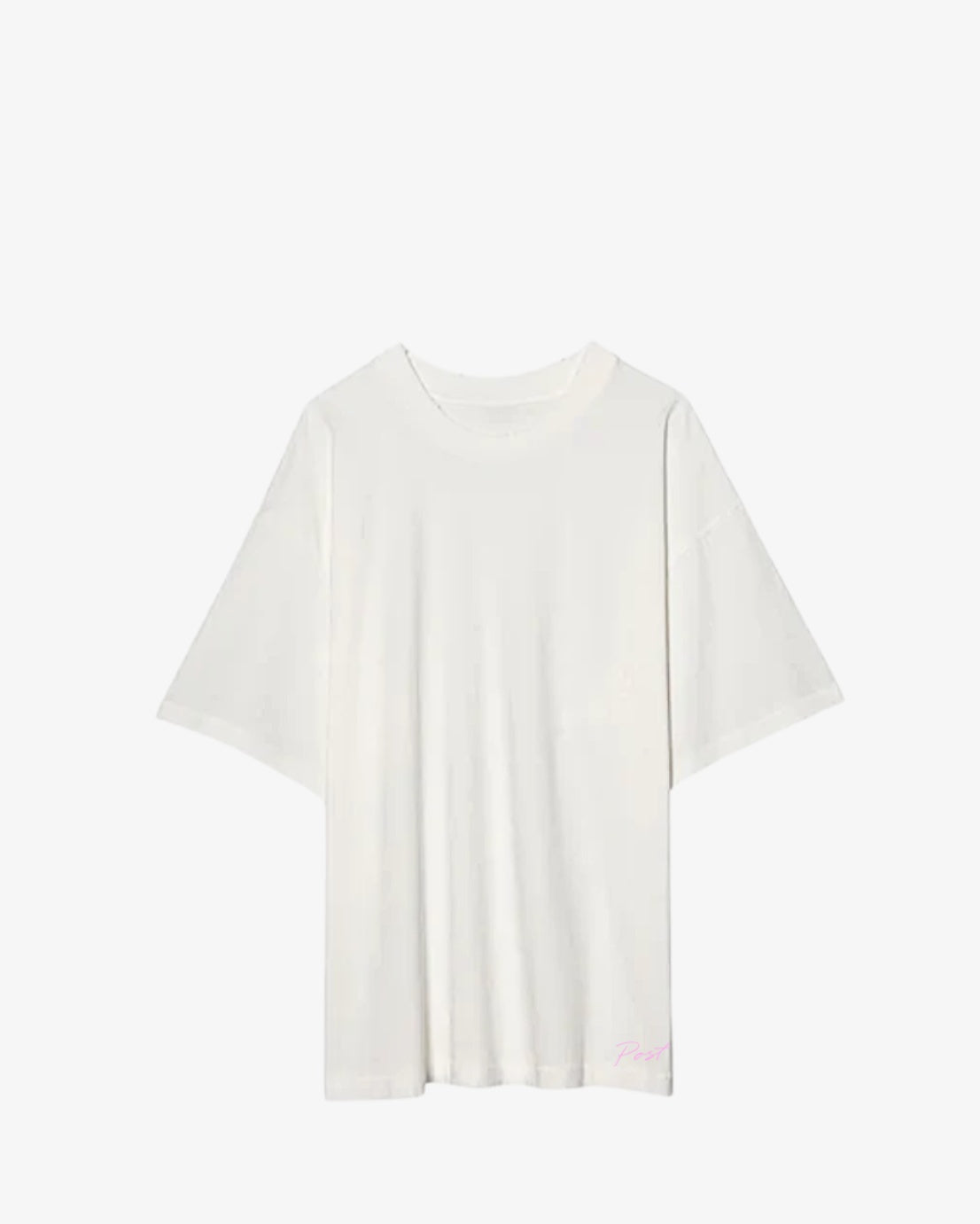 White Tee with Post logo embroidered in either pink or black